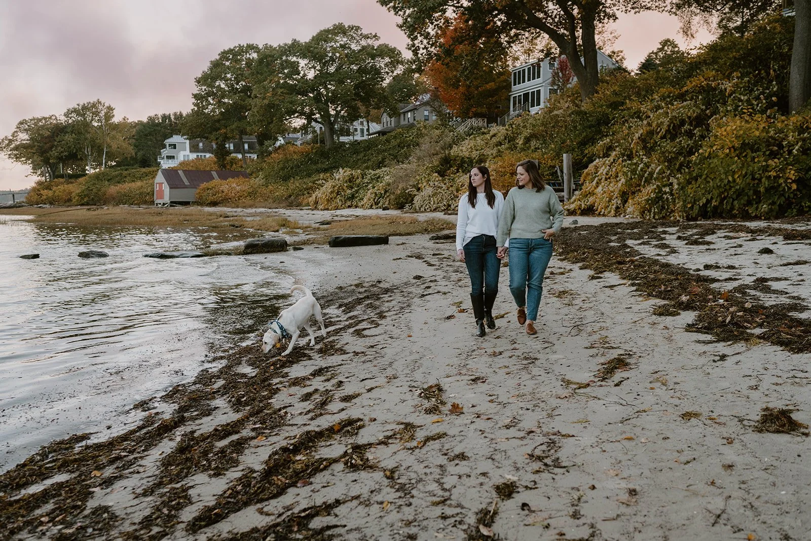 With Anna and Amanda, we decided to get photos of them together without Penelope first just to make sure we got in all the shots we wanted while the sun was still out - also just in case she decided to run in the water. We were next to the ocean and we didn’t want them to possibly get muddy or wet. This also gave us all time to talk and get to know each other well without having to worry about the dog, and really put the focus on Amanda and Anna, the true stars of the shoot! We were able to take photos down by the water, on the dock, and finally by the rocks where they had parked.